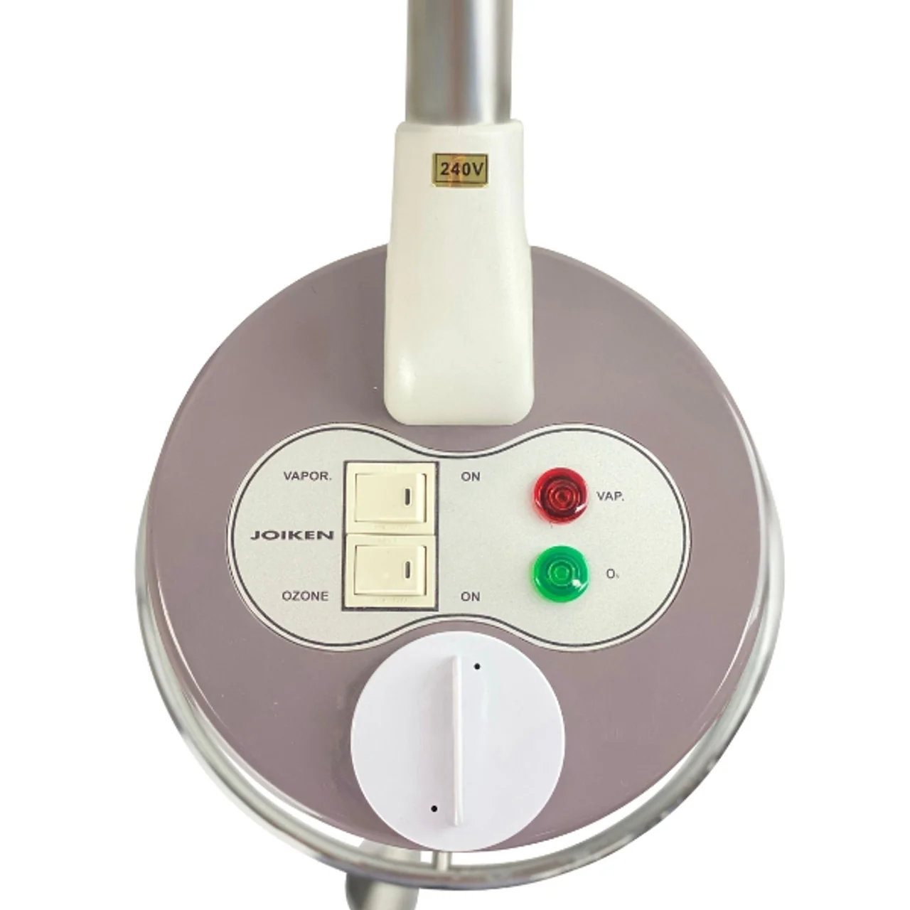 This compact facial steamer with an ozone combo and a twistable arm is a great value for any esthetician. Oxygen ionic vapors offer the best method of sterilizing and cleaning the skin. The steamer has two switches, one to activate the power and the other to activate the ozone. The steam can operate without the ozone function, and there is an automatic shut-off if the water level gets too low.